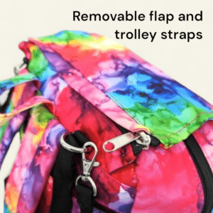 Stay organized on the go with the inbuilt wetbag area located on the outside of the bag, providing a practical solution for storing wet or soiled items. The bag is also equipped with trolley straps, making it easy to travel with, while the multiple insulated pockets allow you to keep beverages and snacks at the desired temperature.